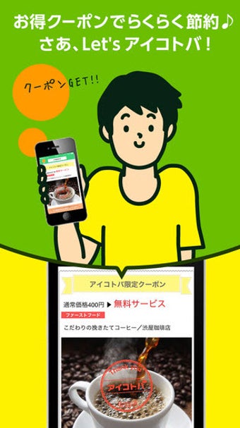 アイコトバを入力して飲食店やスーパーなどのクーポンを入手